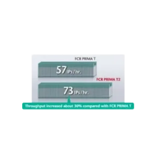 A compactly designed FCR with high resolution and fast processing only Fujifilm can provide. FCR PRIMA T2 is a table-top reader unit which boasts a world-class high processing speed of 73 IPs/hour in the high speed mode (5 pixels/mm). As with all Fujifilm equipment FCR PRIMA T2 is easy to operate. It will help reduce patient waiting time and greatly increase the efficiency of examination workflow.